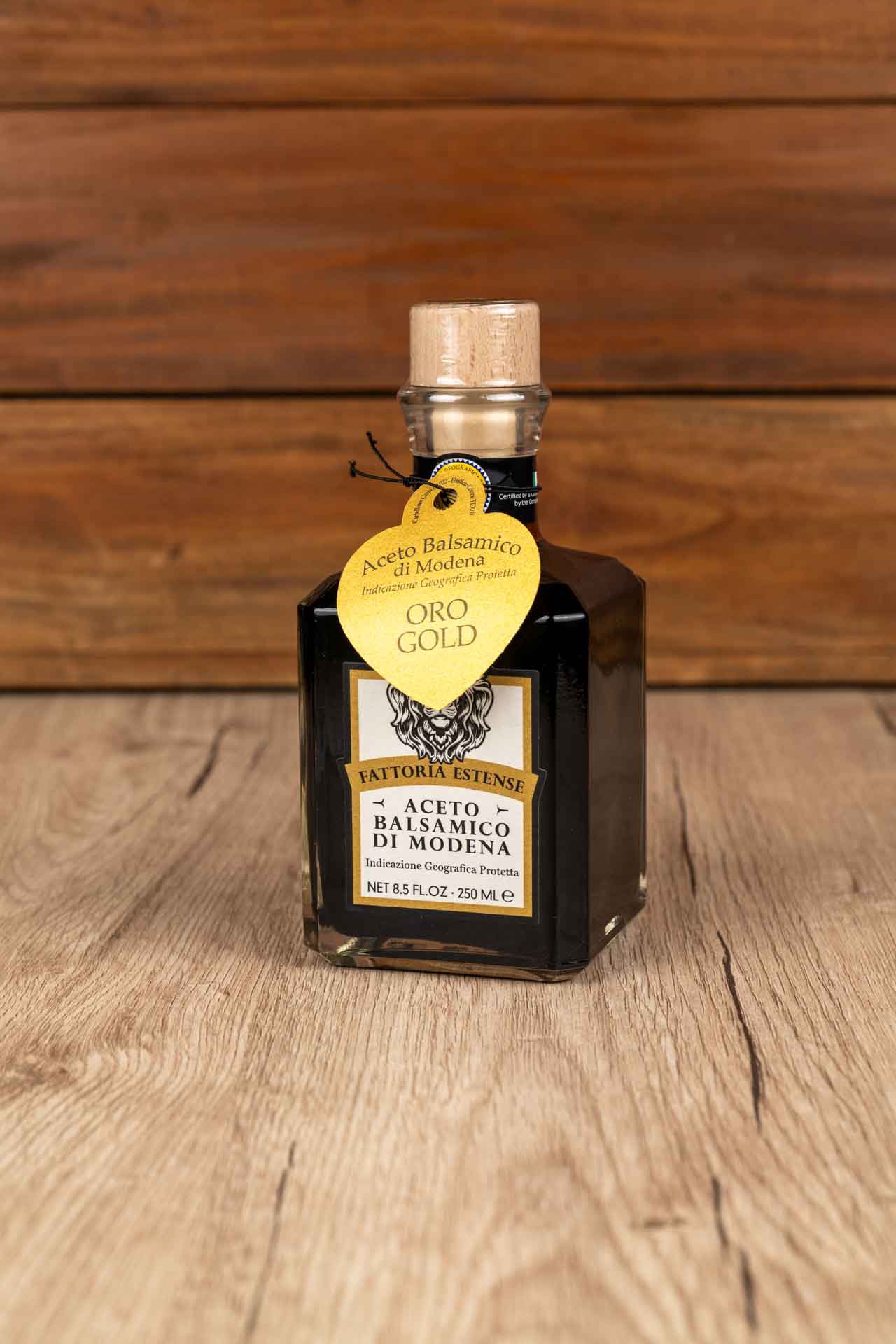 L'aceto balsamico di Modena Fattoria Estense è un condimento tradizionale italiano ottenuto da mosto d'uva cotto e invecchiato in botti di legno, prodotto a Modena.