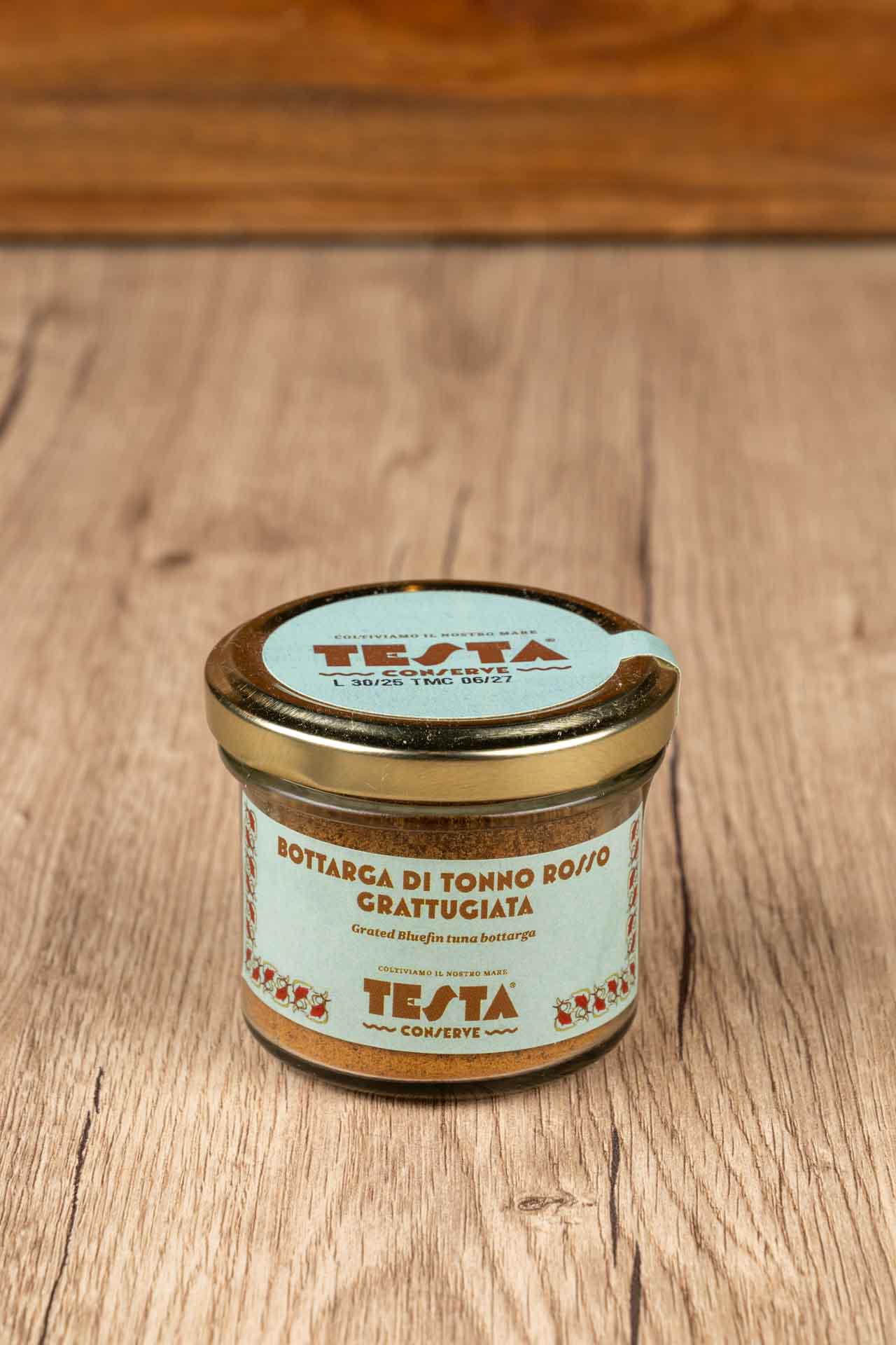 La bottarga di tonno rosso grattugiato è un condimento ottenuto dalle uova salate ed essiccate del Tonno rosso.